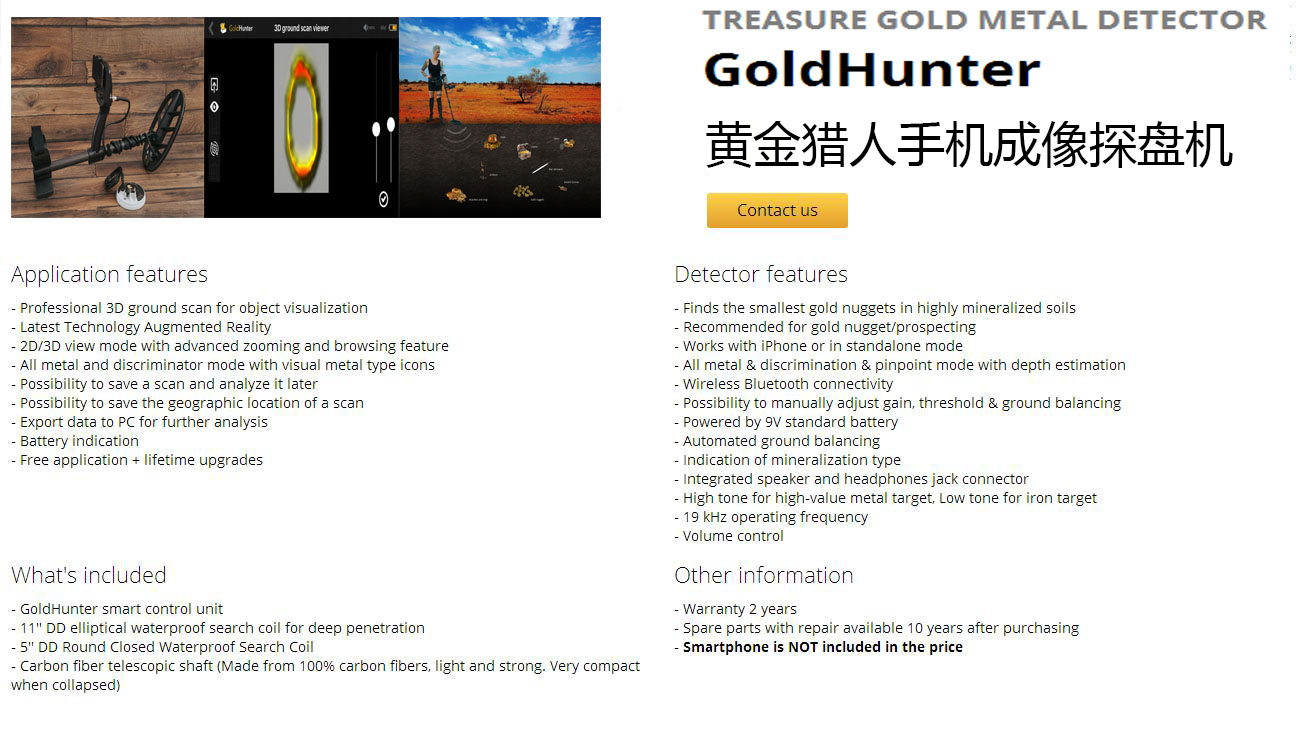 GoldHunter VLF探測(cè)器,它使用智能手機(jī)技術(shù),可以找到金塊、硬幣和寶藏,還可以在挖掘前在屏幕上看到它們。它能準(zhǔn)確區(qū)分不同的金屬類型,甚至在磁化土壤中也能找到金塊。GoldHunter攜帶輕便。GoldHunter金屬探測(cè)器,它使用智能手機(jī)現(xiàn)實(shí)技術(shù)實(shí)時(shí)顯示屏幕上的物體!