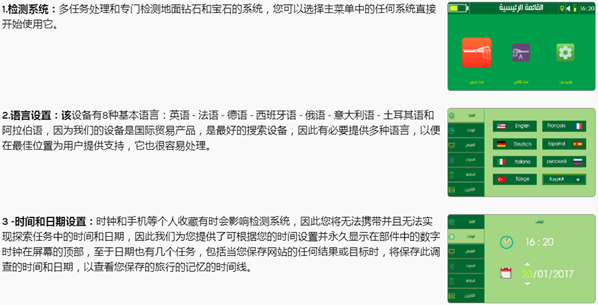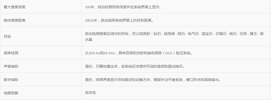 ?Electra設(shè)備采用科學(xué)系統(tǒng)和先進(jìn)技術(shù),具有高水平性能,通過(guò)使用現(xiàn)代搜索系統(tǒng)檢測(cè)地下鉆石和寶石,深度可達(dá)100米,為用戶提供全面的搜索界面和準(zhǔn)確跟蹤目標(biāo)的位置和軌跡。