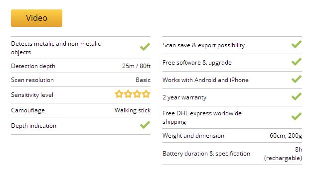 尋寶者探測器這種黃金和金屬探測器提高了靈敏度,因此可以探測到更小或埋在地下更深的物體。它體積小,攜帶方便,集成在碳徒步旅行棒,可擴展,容易使用??砂l(fā)現(xiàn)貴重金屬,如金、銀、銅器以及箱子、密室、空洞和隧道。