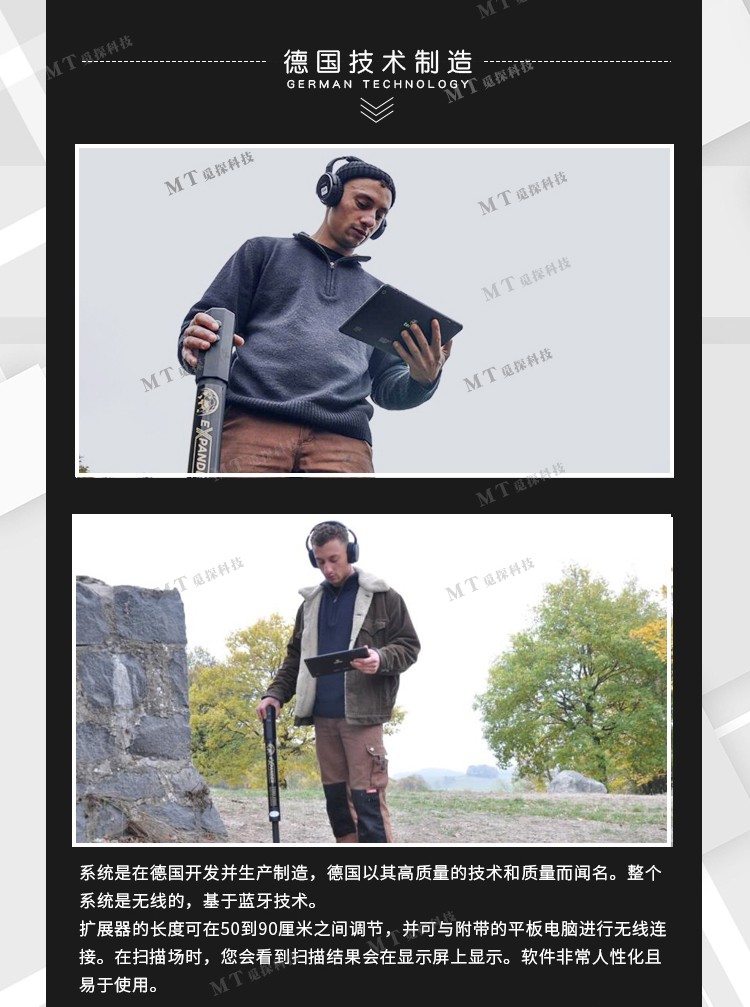德國(guó)阿爾堡3D可視成像地下金屬探測(cè)儀垂直伸縮版可調(diào)節(jié)50至90厘米