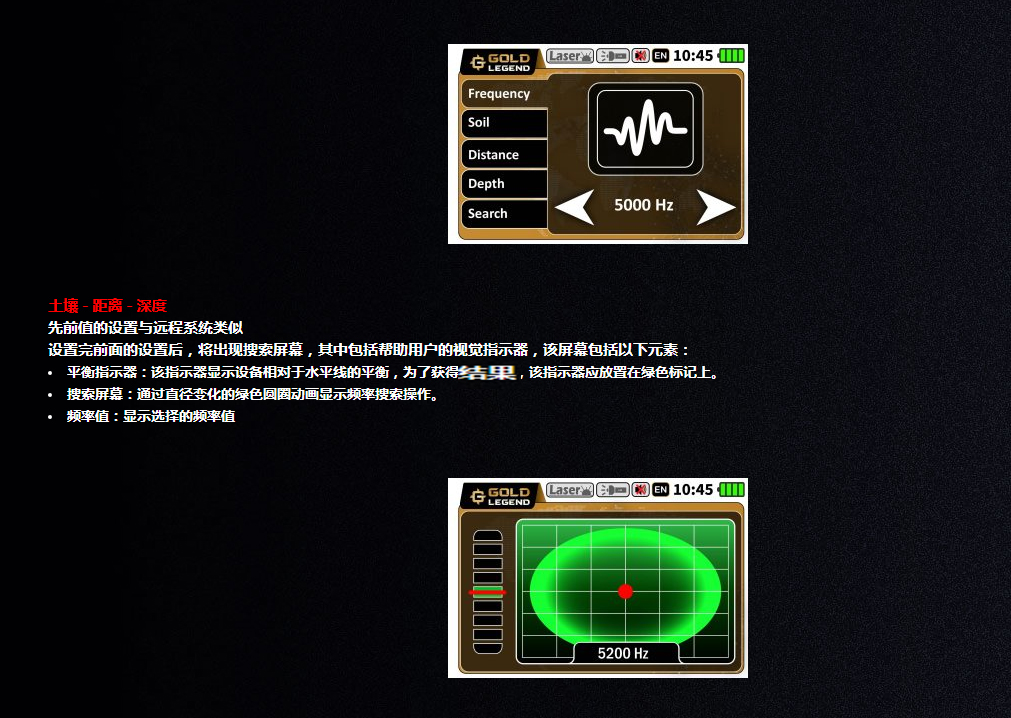 在開始搜索之前,用戶必須定義一些選項(xiàng),包括: 頻率 頻率值表示設(shè)備生成并通過天線發(fā)送的搜索頻率,用戶可以在一定的值范圍內(nèi)準(zhǔn)確設(shè)置該值。