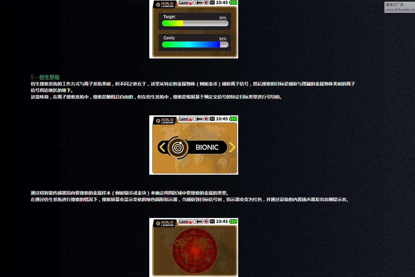 3 – 智能深度 4 – 離子系統(tǒng) 離子搜索系統(tǒng)是根據(jù)新技術(shù)開發(fā)的,這是金屬探測器中代表著對以前存在的傳統(tǒng)系統(tǒng)的重大改進(jìn)。 新技術(shù)可以準(zhǔn)確地檢測埋在地下的金屬目標(biāo)產(chǎn)生的離子場,確保信號(hào)的準(zhǔn)確接收和處理,并能夠控制屏幕上的一些信號(hào)設(shè)置以確保準(zhǔn)確的結(jié)果。